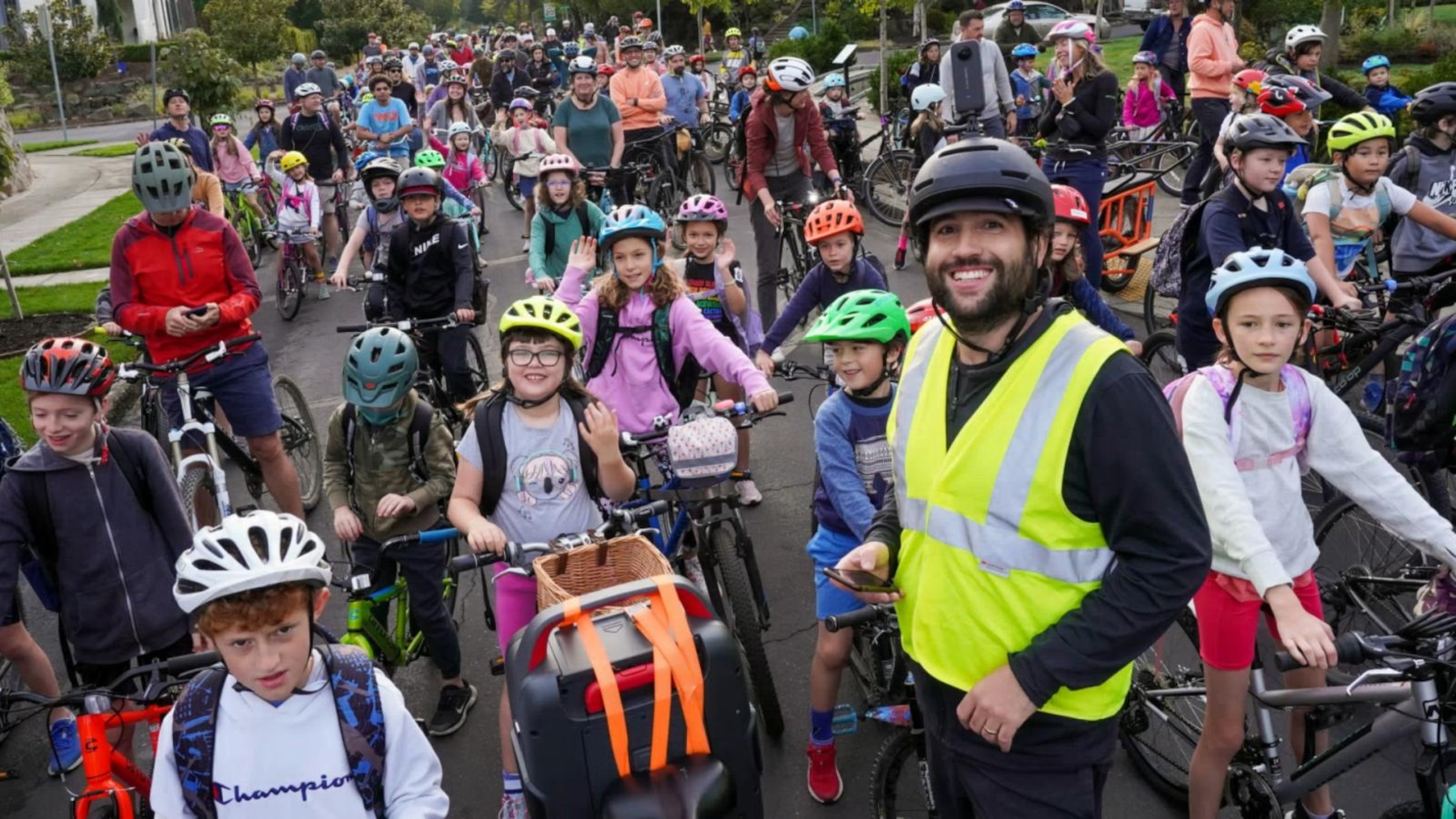 ‘Bike bus’ movement gains traction, drawing kids and celebrities