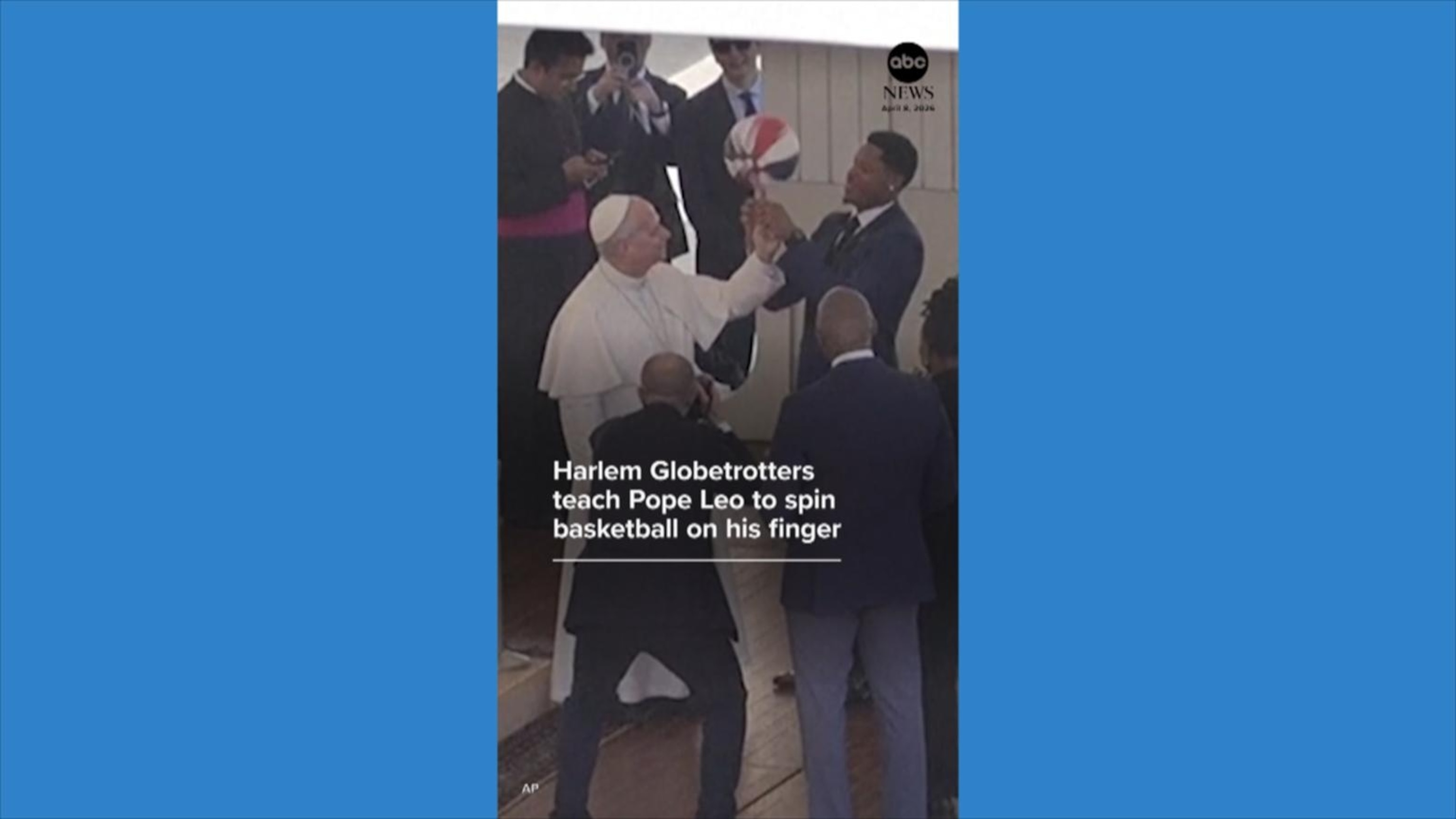 Harlem Globetrotters teach Pope Leo to spin basketball on his finger